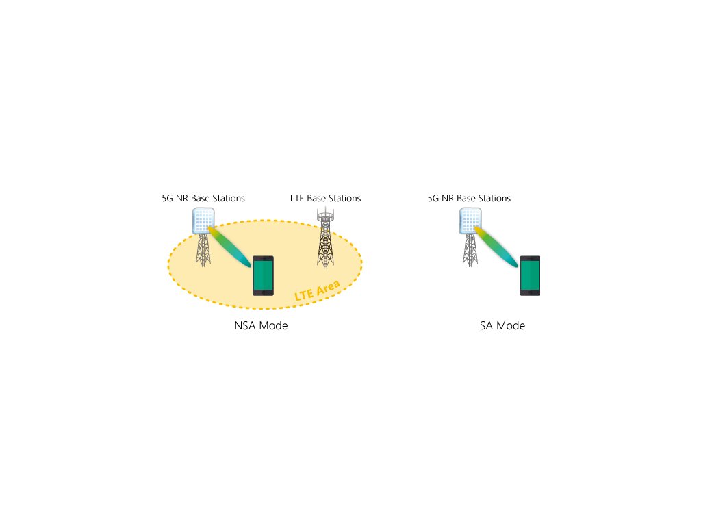 Ty lze kategorizovat do dvou režimů: Non-standalone mode (NSA) využívaný zejměna v Evropě, ke je nástup 5G NR oproti zemím jako Čína nebo US, pomalejší, a standalone mode (SA). V NSA operátoři nasazují 5G gNB uzly, které se připojují ke stávajícímu 4G EPC jádru prostřednictvím 4G eNB uzlů. V této architektuře není potřeba samostatného jádra 5G, protože uzly 5G gNB se při řízení informací spoléhají na síť 4G. Poskytovatelům služeb to nabízí nákladově efektivní a rychlou cestu k zavedení 5G využitím jejich stávající infrastruktury postavené na 4G. Navíc, v místech, kde se nově zavede 5G, se zvyšuje kapacita a šířka pásma v rámci sítě, kde je stále v provozu i 4G.