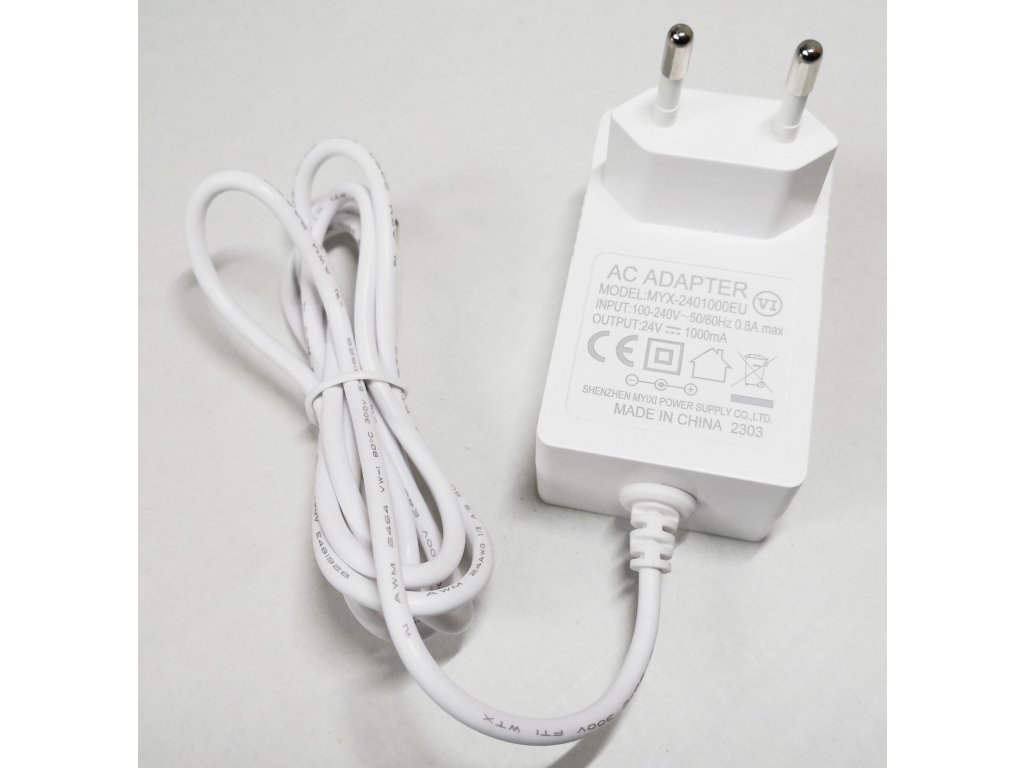 - Napájení: 24V 1.0A (Model: MYX-2401000EU), délka kabelu 110cm