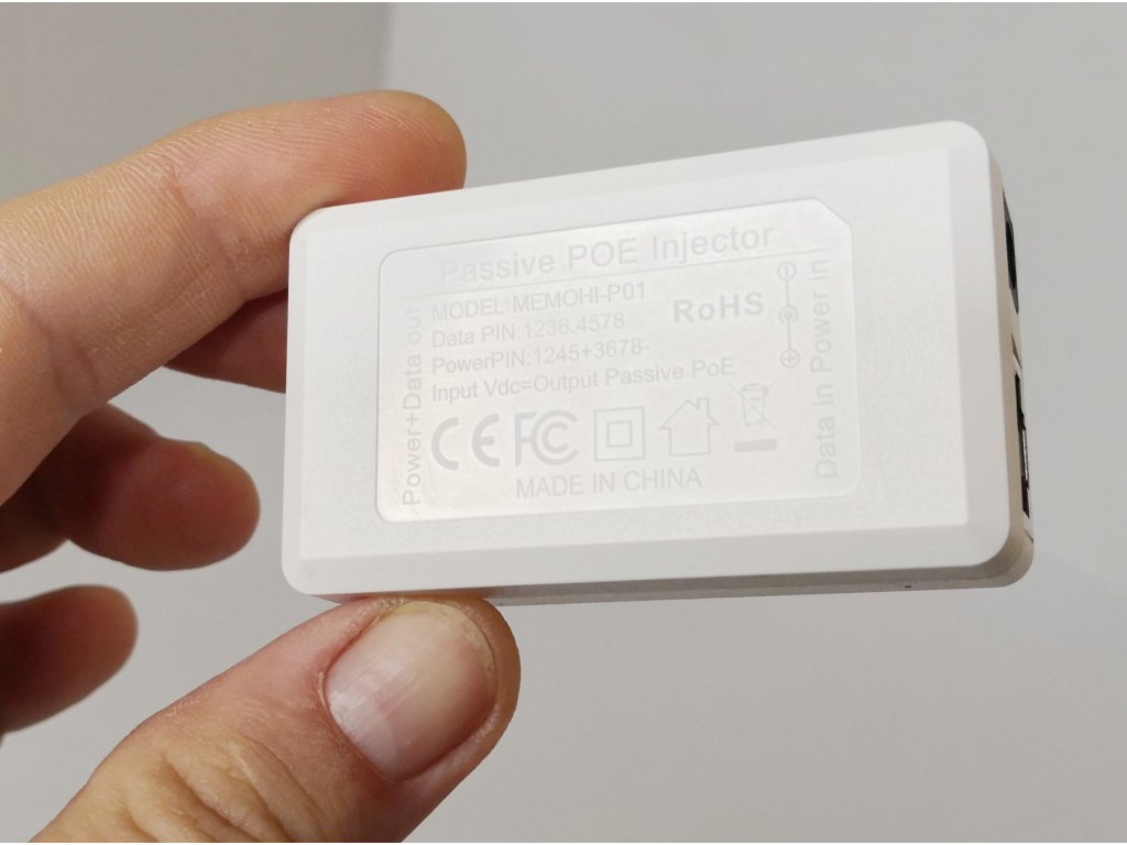 - Pasivní POE Injektor: Power + DATA OUT, Data PIN: 1236.4578, Power PIN: 1245+3678