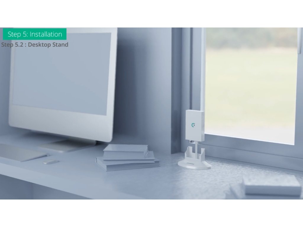 Jednotka má slot na SIM a je napájena pomocí LAN kabelu přes PoE. Jednotku lze umístit kromě venkovních prostor i na okenní parapet, na stůl vedle počítače, k televizi atd.