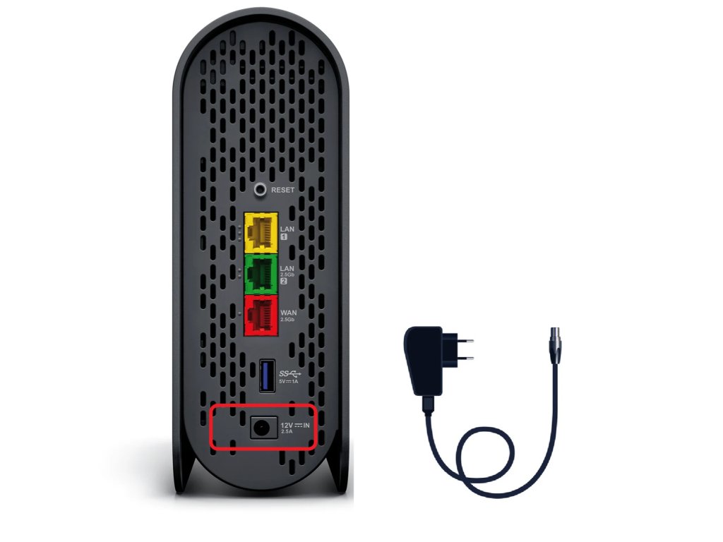 Porty: 1x WAN (2,5 Gbps), 1x LAN (2,5 Gbps), 1x LAN (1 Gbps), USB-A, napájecí port 12V + tlačítko reset