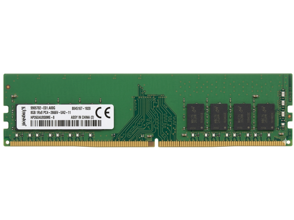 Model: Kingston DDR4 8GB 1Rx8 PC4-2666V-UA2-11 2666MHz DIMM 9995702-E04.A00G HP26D4U9S8ME-8