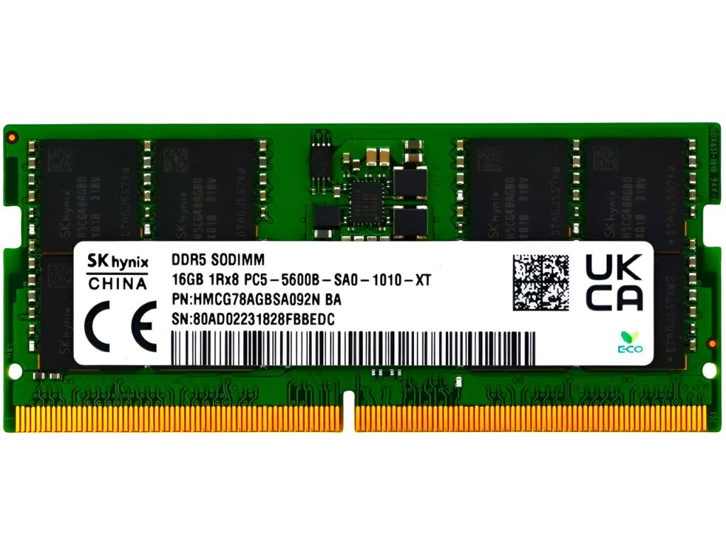 Model: SK hynix SO-DIMM 16GB 1Rx8 PC5-5600B-SA0-1010-XT CL46 HMCG78AGBSA092N AA nebo BA