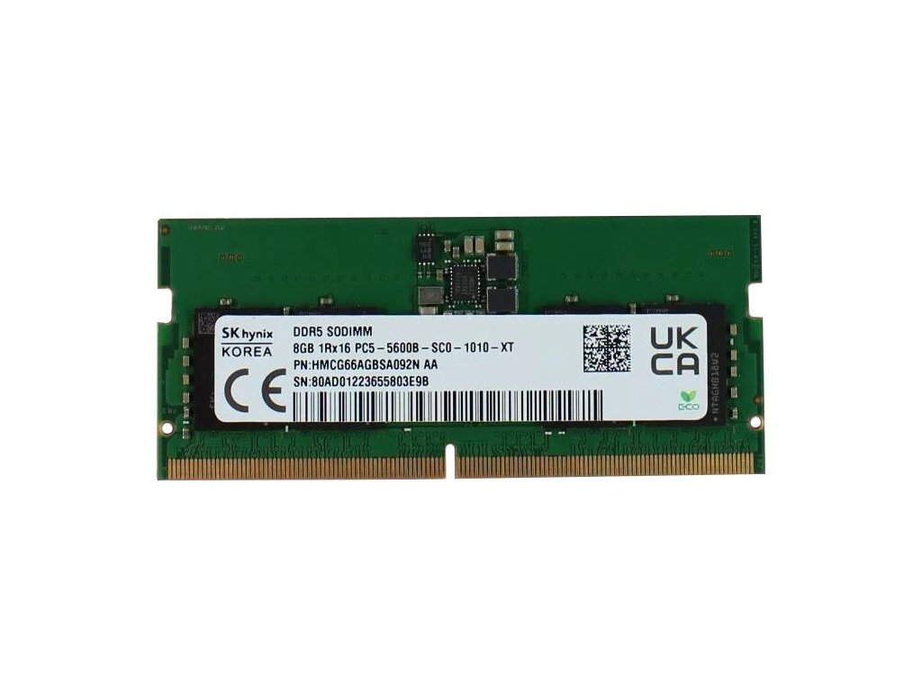Model: SK hynix DDR5 SODIMM 8GB 1Rx16 PC5-5600B-SC0-1010-XT CL46 HMCG66AGBSA092N